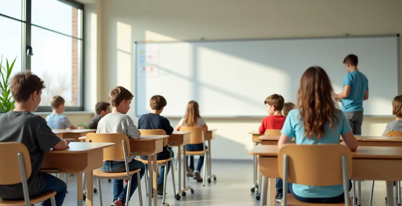 Über die reine Prävention von Haltungsschäden hinaus hat Ergonomie einen direkten, messbaren Einfluss auf den eigentlichen Zweck der Schule: den Lernerfolg. Ein entscheidender Faktor hierbei ist die Sitzhaltung. Traditionelle Stühle zwingen den Körper oft in einen 90-Grad-Winkel zwischen Rumpf und Oberschenkeln. Diese starre Haltung komprimiert den Bauchraum, schränkt die Bewegung des Zwerchfells ein und führt so zu einer flacheren Atmung. Die Konsequenz ist eine reduzierte Sauerstoffaufnahme, was wiederum die Sauerstoffversorgung des Gehirns beeinträchtigt.