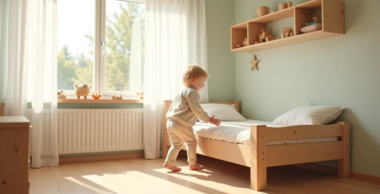 Ein Kind, das selbstständig in sein Bett klettern und es bei Bedarf wieder verlassen kann – sei es für einen Schluck Wasser oder weil es morgens aufwacht – erfährt sich als kompetent und selbstwirksam. Es ist nicht länger passiver Empfänger elterlicher Hilfe, sondern aktiver Gestalter seiner eigenen kleinen Welt. Diese Erfahrung der Autonomie ist entscheidend, denn sie legt den Grundstein für zukünftige Lernprozesse und die Entwicklung von Verantwortungsbewusstsein. Natürlich bedeutet das nicht, dass jedes Kind vom ersten Tag an bereit für absolute Freiheit ist. Eine Studie des IFP Familienhandbuchs zeigt, dass etwa 10-15 % der Kinder in den ersten Jahren besonderen Schutz für eine stabile Entwicklung ihrer Selbstständigkeit benötigen. Dies unterstreicht die Wichtigkeit einer sorgfältig „vorbereiteten Umgebung“, die Freiheit und Sicherheit ausbalanciert.