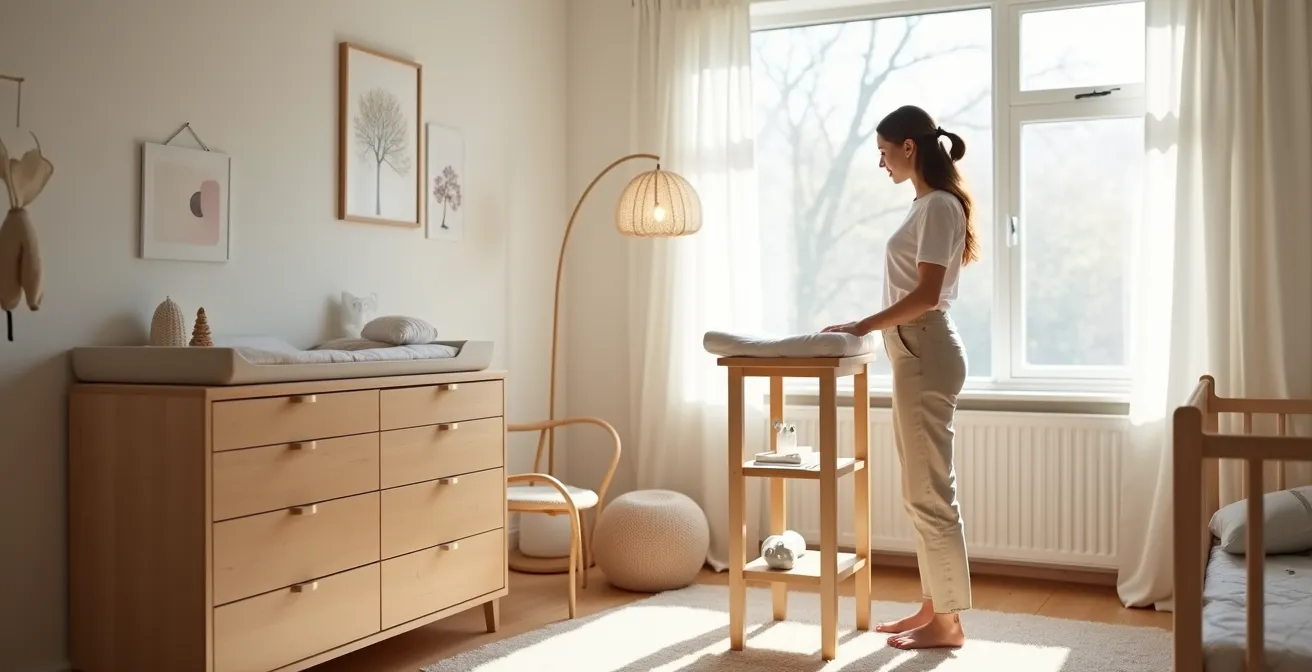 - Vertikalen Raum nutzen: Montieren Sie einen Wandorganizer oder flache Regale in Griffweite für Cremes, Tücher und Windeln.