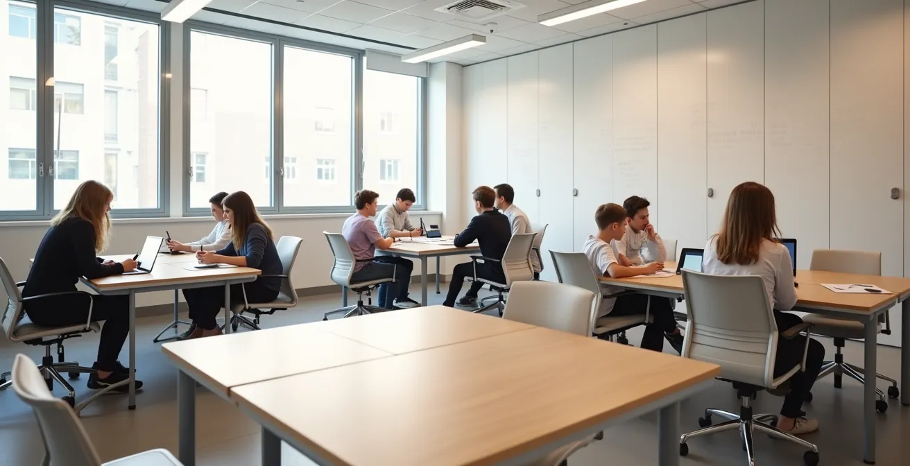 - Flexibilität ist der Schlüssel: Modulare Möbel und eine zonierte Raumaufteilung ermöglichen den schnellen Wechsel zwischen verschiedenen Lernszenarien.