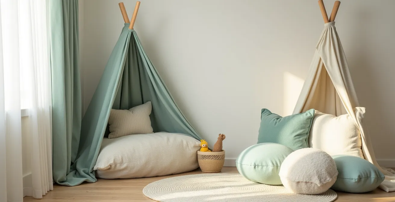 Sie benötigen keinen separaten Raum, um eine wirkungsvolle Kuschelecke zu schaffen. Oft ist eine ungenutzte, „tote“ Ecke im Kinder- oder Wohnzimmer der perfekte Ort. Der Trick besteht darin, diesen kleinen Bereich maximal von der Umgebung abzugrenzen und sensorisch aufzuladen. Eine Ecke hat von Natur aus bereits zwei Wände, die eine schützende Basis bilden. Ihre Aufgabe ist es, die dritte und vierte „Wand“ zu schaffen.