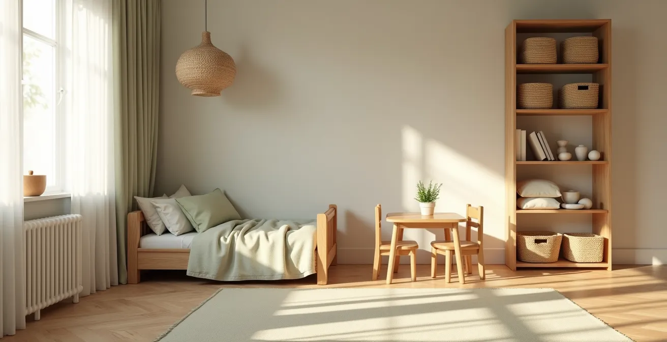 Nutzen Sie multifunktionale Möbel, Wandregale in Kinderhöhe und regelmäßige Spielzeug-Rotation. Auch 10qm können montessori-gerecht gestaltet werden.